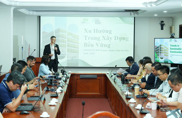 Mr Douglas Snyder, Executive Director of VGBC, presenting at the cofference. Source: baoxaydung.vn