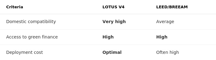 LOTUS V4 demonstrates strong alignment with ASEAN sustainable finance taxonomy, making it easier for projects to accesss green funding.