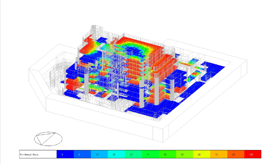 • Năng lượng Tái tạo: Đánh giá khả năng tiếp cận bức xạ mặt trời giúp đảm bảo công trình được bố trí tối ưu cho việc triển khai các hệ thống điện mặt trời hoặc nhiệt mặt trời tại chỗ.