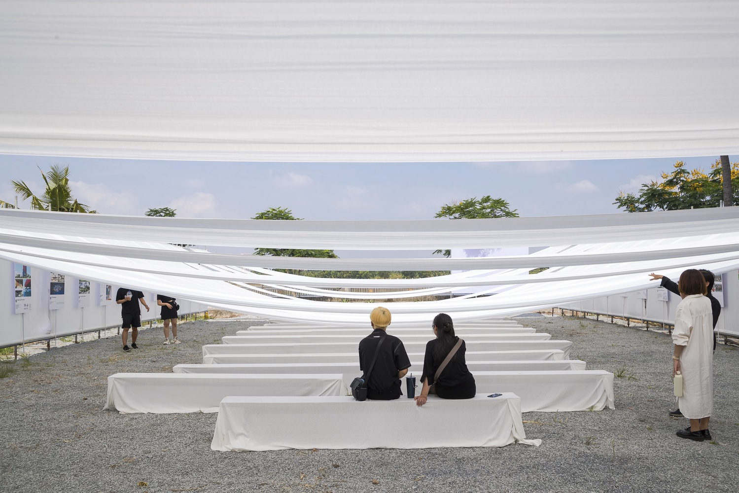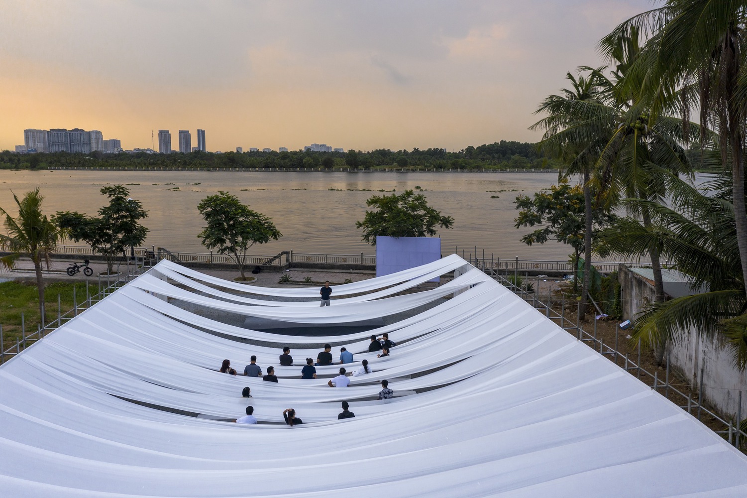 Trên một lô đất ven sông bị bỏ quên, một cấu trúc tối giản với gỗ và vải tạo nên nơi tụ họp cộng đồng, thu hút chú ý đến mảnh đất từng bị xem là vô dụng.